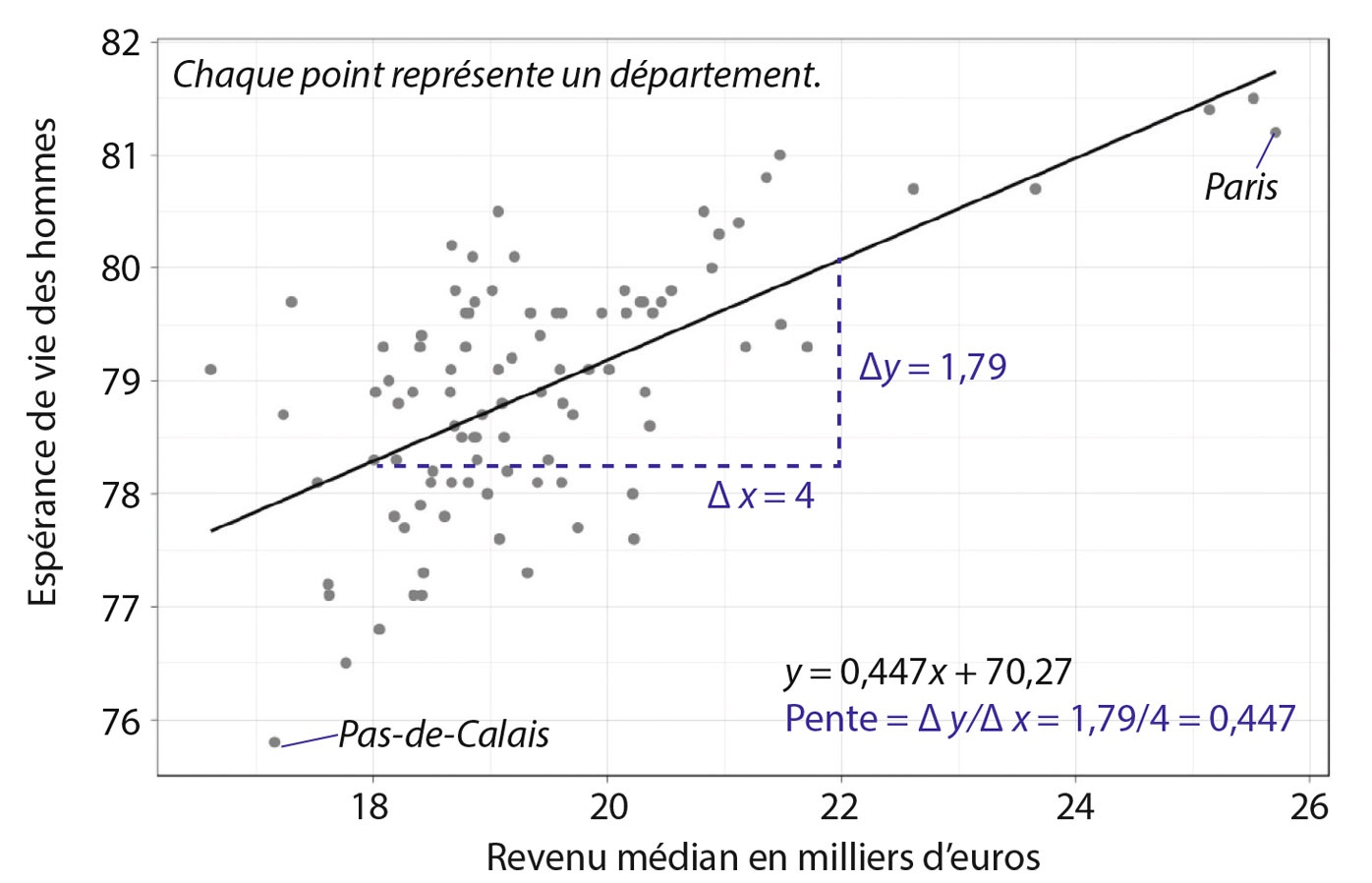 plot1 + geom_point(col="blue") + geom_smooth(method = "lm", color="red", se=TRUE) + theme_grey()Une autre manière de faire qui peut s’avérer pratique…